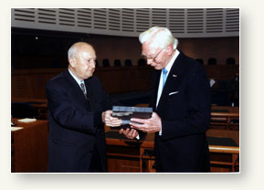 Remise du 1er prix de la Tolérance Marcel Rudloff à Carl Aage Norgaard, le 27 mars 1998.