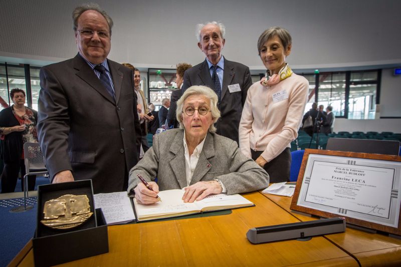 Le prix de la Tolérance Marcel Rudloff 2015 a été décerné au Professeur Francine LECA, première femme à être devenue chirurgien cardiaque en France et chef des services de chirurgie cardiaque des hôpitaux Laennec puis Necker (Paris) pendant 17 ans, elle a fondé en 1996, l’Association Mécénat et Chirurgie Cardiaque enfant du Monde qui récolte des fonds pour réparer les cœurs d’enfants venus des pays défavorisés atteints de graves maladie cardiaques. Plus de 2.000 enfants ont ainsi pu être opérés dans 12 hôpitaux en France grâce à cette organisation et au réseau qu’elle a généré (300 familles d’accueil, 150 bénévoles et une équipe de 9 salariés) . Personnalité exceptionnelle, honorée de nombreux titres scientifiques prestigieux, Francine LECA est aussi Commandeur dans l’Ordre National du Mérite et dans l’Ordre National de la Légion d’Honneur.